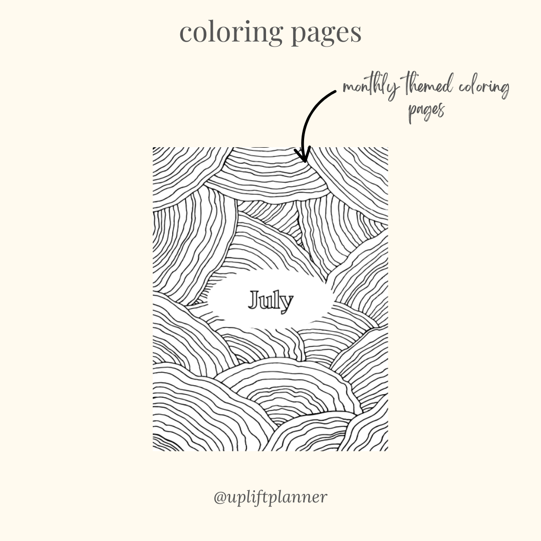 - Monthly coloring pages are 90lb (even thicker white paper)